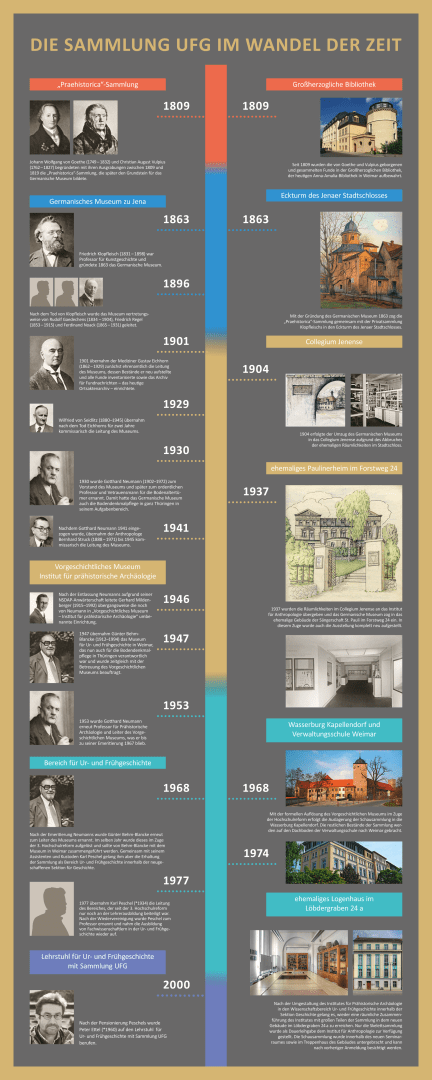 Die Sammlung Ur- und Frühgeschichte wurde 1863 durch den Kunsthistoriker Friedrich Klopfleisch als Germanisches Museum der Universität Jena gegründet.