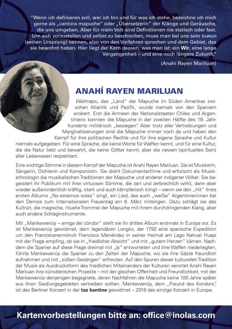 Anahí Mariluan. Konzert in Berlin 2018