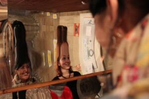 Lachen vor der Zerrspiegeln im Museum des Humors und der Satire in Gabrovo
