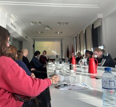 Besuche bei der GIZ (Deutsche Gesellschaft für Internationale Zusammenarbeit) und der AHK (Deutsch-Tunesische Industrie- und Handelskammer) erlaubten den Studierenden einen Einblick in die Arbeit international agierender Organisationen. Nachdem die Vertreter:innen ihre Arbeit vorgestellt und den Alltag interkultureller Zusammenarbeit präsentiert hatten, ergaben sich angeregte Diskussionen mit den Studierenden zur Praxis der interkulturellen Kommunikation, sowie Strategien für die globale Arbeitswelt. Außerdem wurden Kontakte geknüpft und Praktikumsmöglichkeiten für Studierende erörtert.