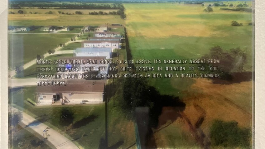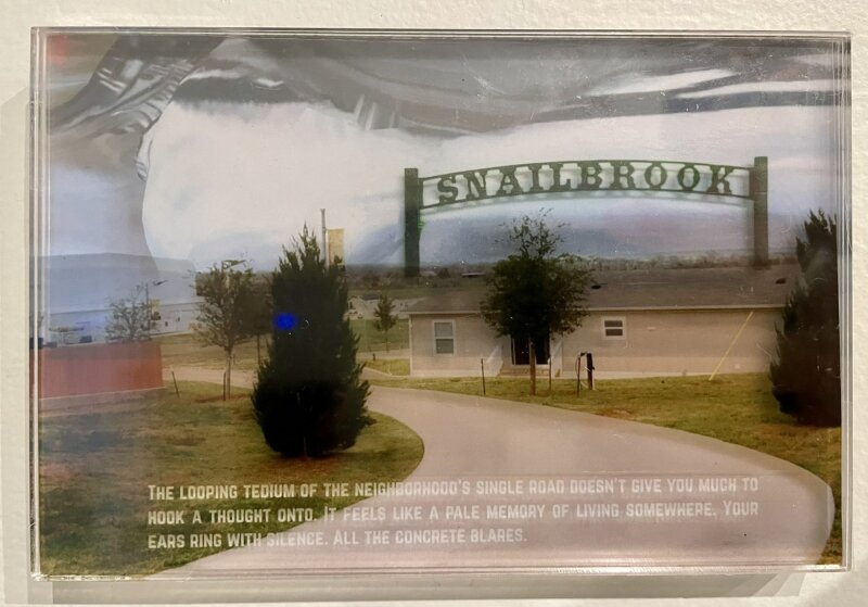 Mit Überlagerungen von Fotografien und Text schufen wir räumlich wirkende Postkarten, die ein genaueres Hinsehen nötig machen, um die Ebenen zu erkennen. Snailbrook, Texas, findet am Rand des Hypes statt, fernab von der Musik- und Tech-Start-Up-Szene in Austin. Weitestgehend unsichtbar. Lokale Aktivist:innen in Bastrop versuchen ein kritisches Bewusstsein für die Landnahme und die Entwicklungen rund um die Boring Bodega zu schaffen, jedoch fehlt die nötige Aufmerksamkeit.