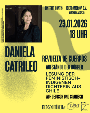 El 23 de enero de 2026, la autora mapuche Daniela Catrileo leerá poemas en Iberoamérica (Wagnergasse 25). La entrada es gratuita. El evento se celebrará en alemán y español.